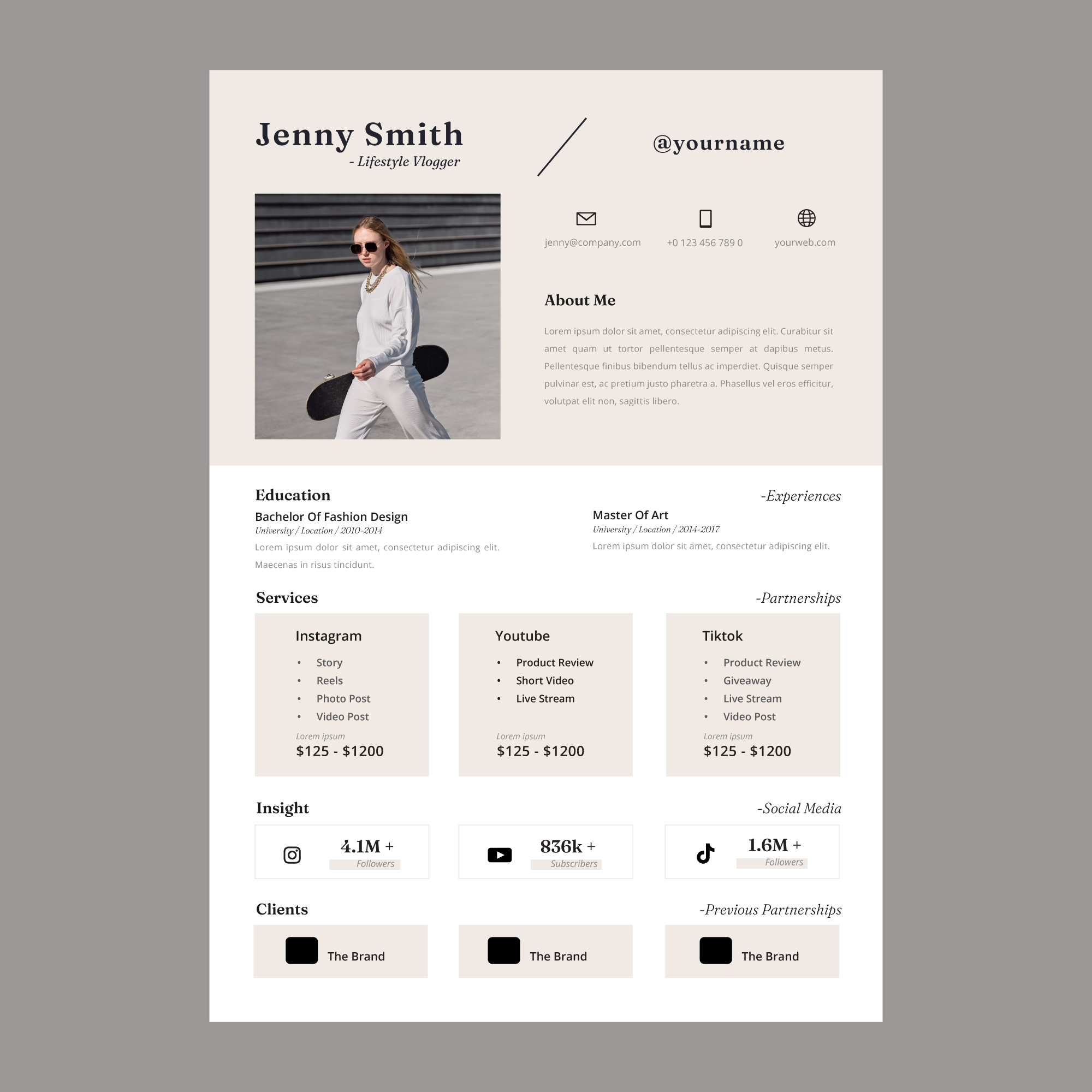 免费设计师简约时尚风格简历AI源文件