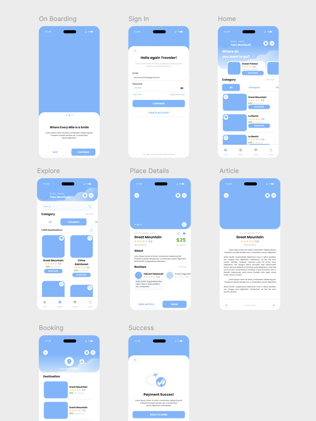 8页旅游app低保真原型图sketch,xd,figma源文件