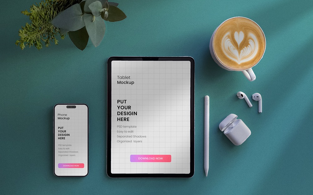 免费Apple iMac、iPad、iPhone响应式屏幕电脑样机、手机样机、平板样机mockup psd源文件