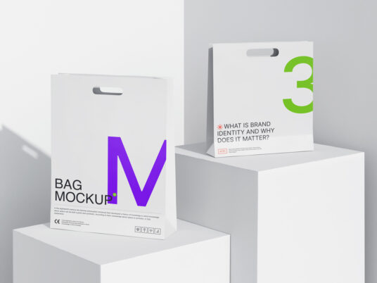 两个纸质购物袋模型psd样机