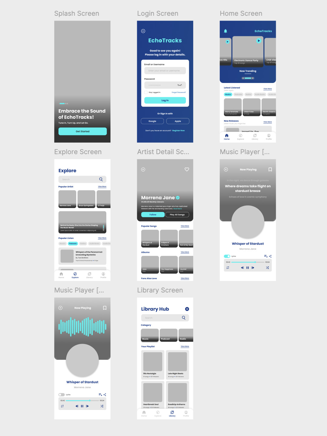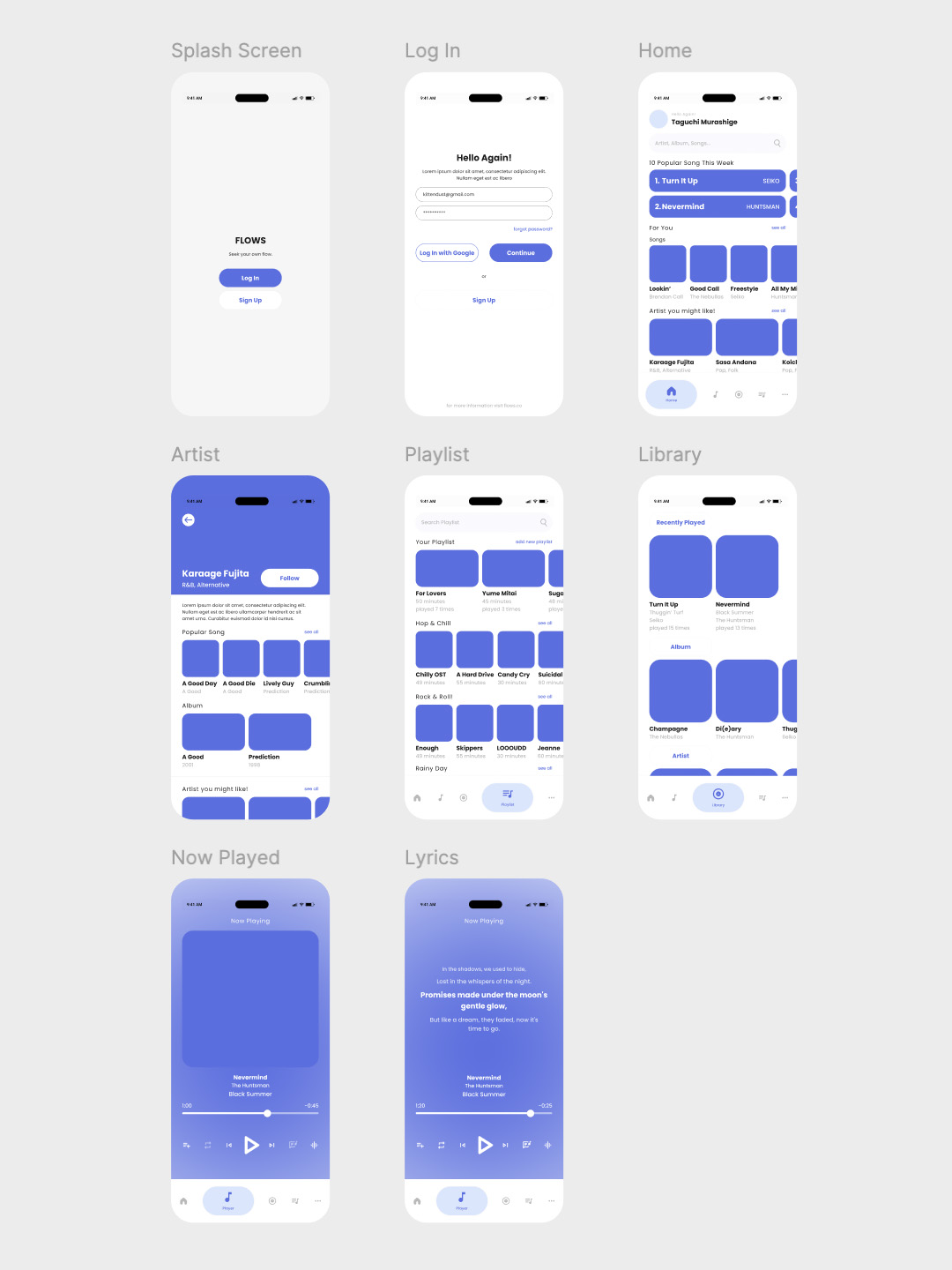 4页左滑设计音乐app低保真figma源文件