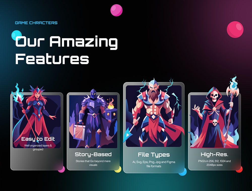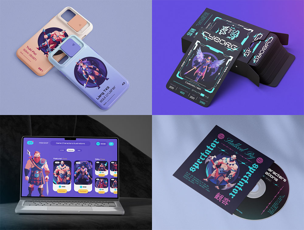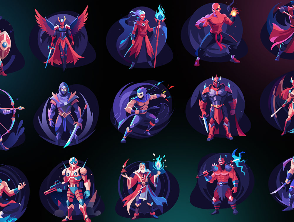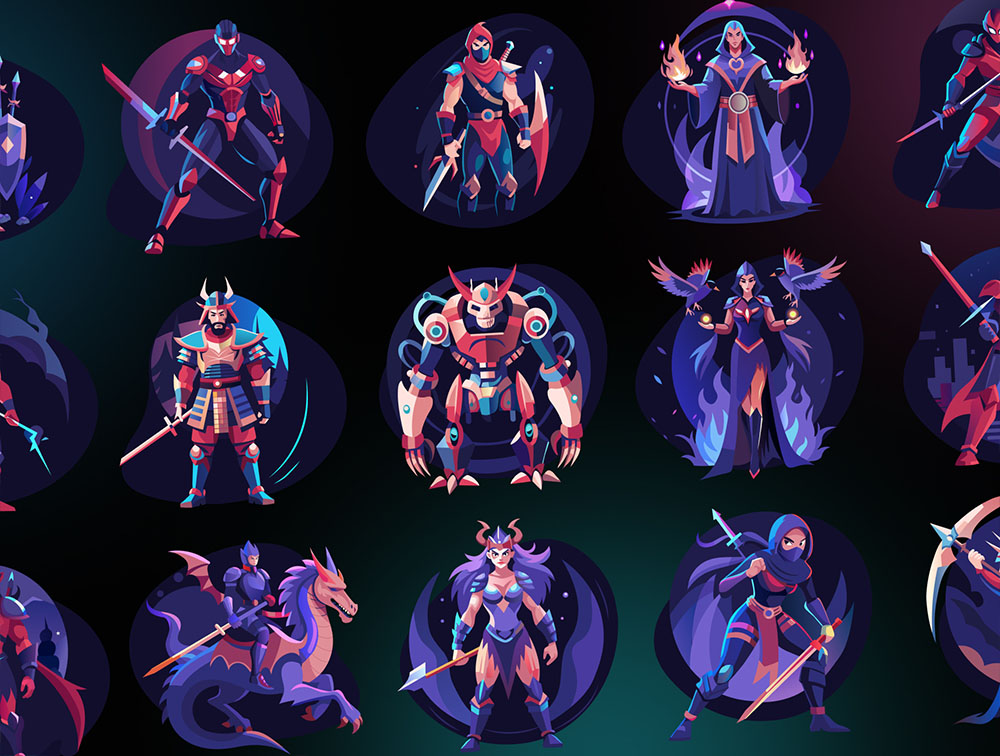100个游戏角色插图Ai, EPS,Figma,PNG, JPG和SVG文件