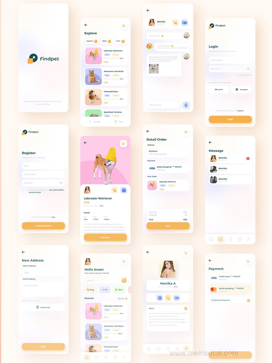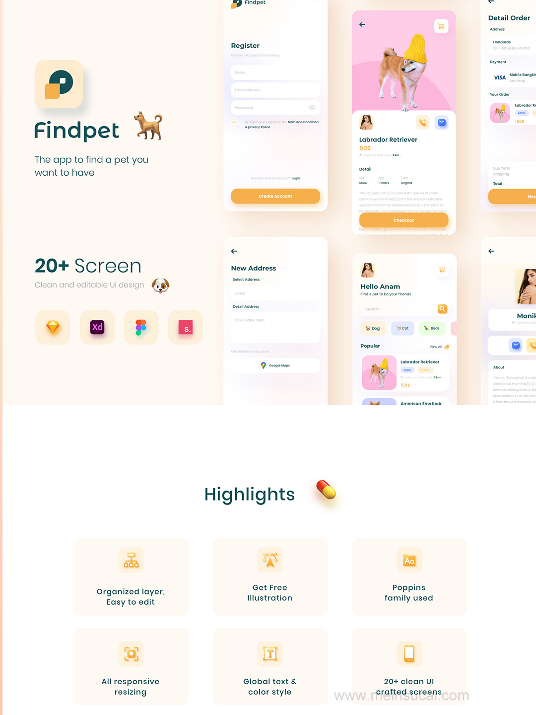 26页宠物、萌宠电商平台sketch,xd,figma,studio格式