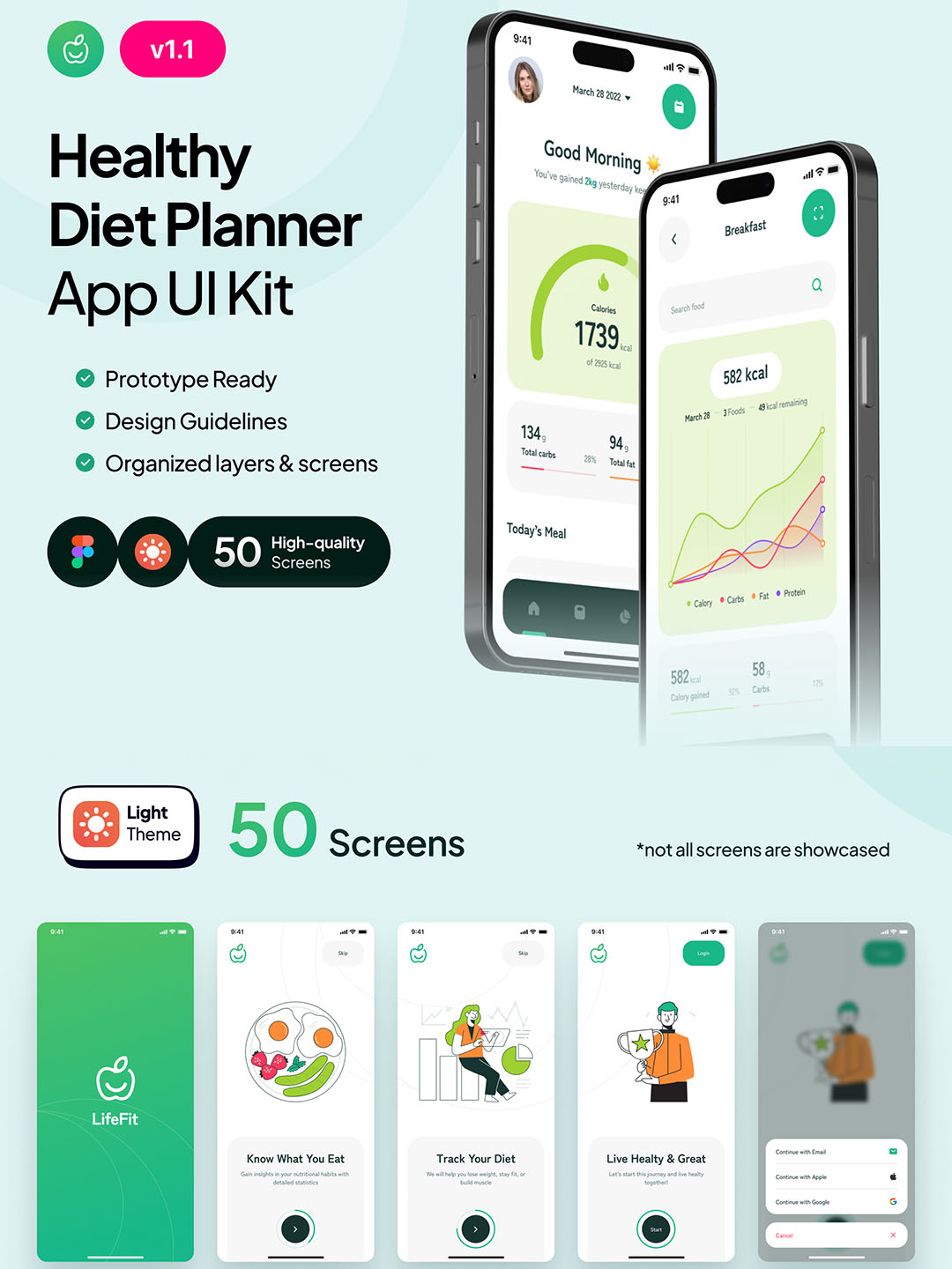 70页明暗模式健康和保健UI工具包figma源文件