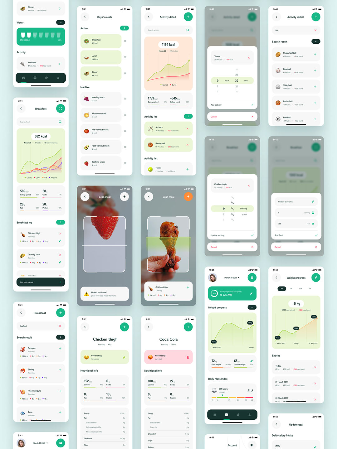 50页健康饮食卡路里计数器APP应用程序UI工具包figma源文件