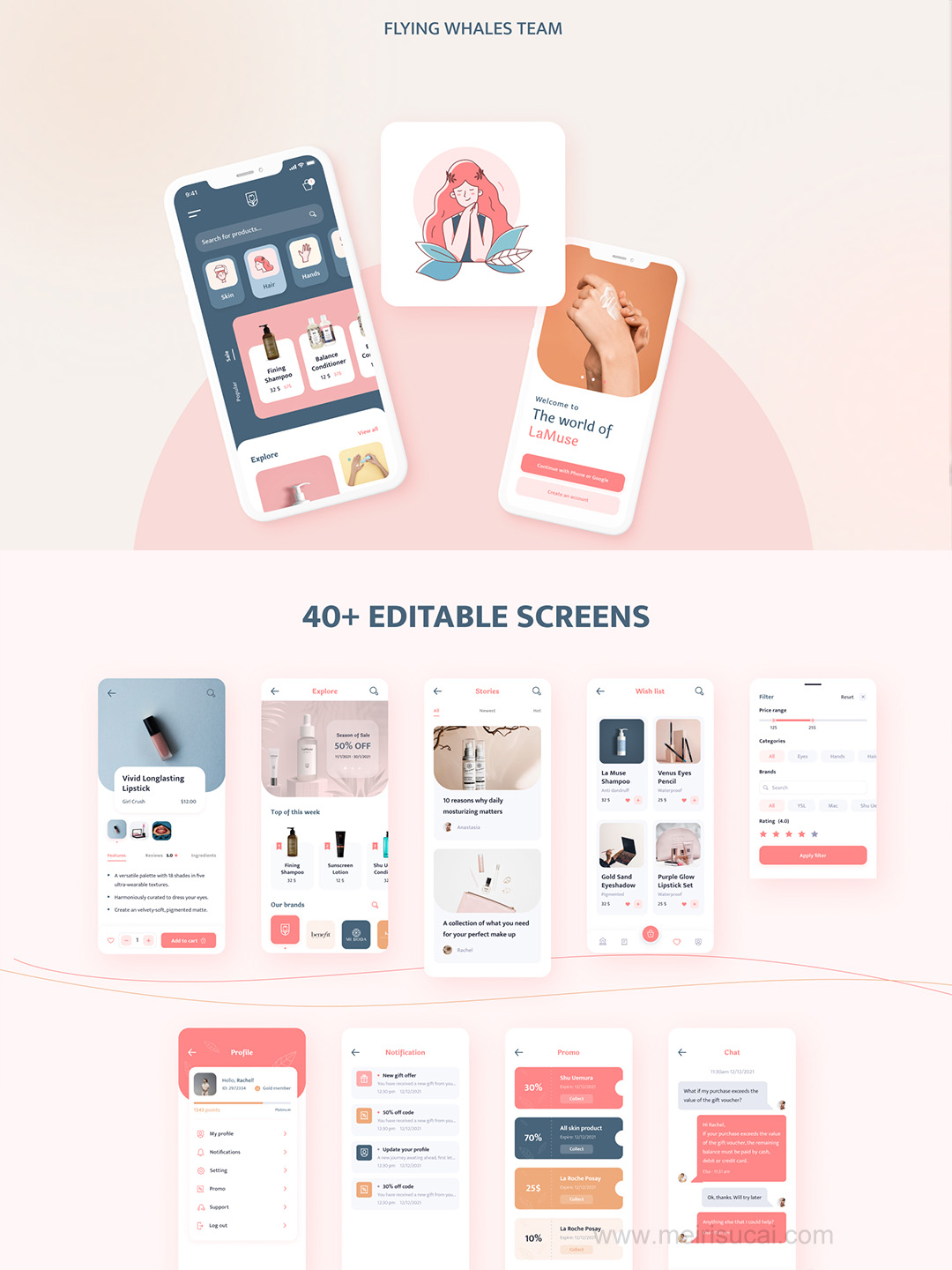 40页化妆品品牌电商app设计sketch,xd,figma格式