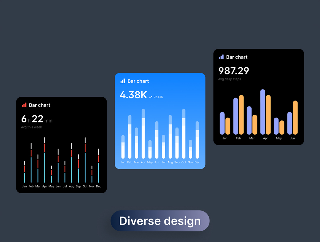 100个不同风格的UI图表figma源文件