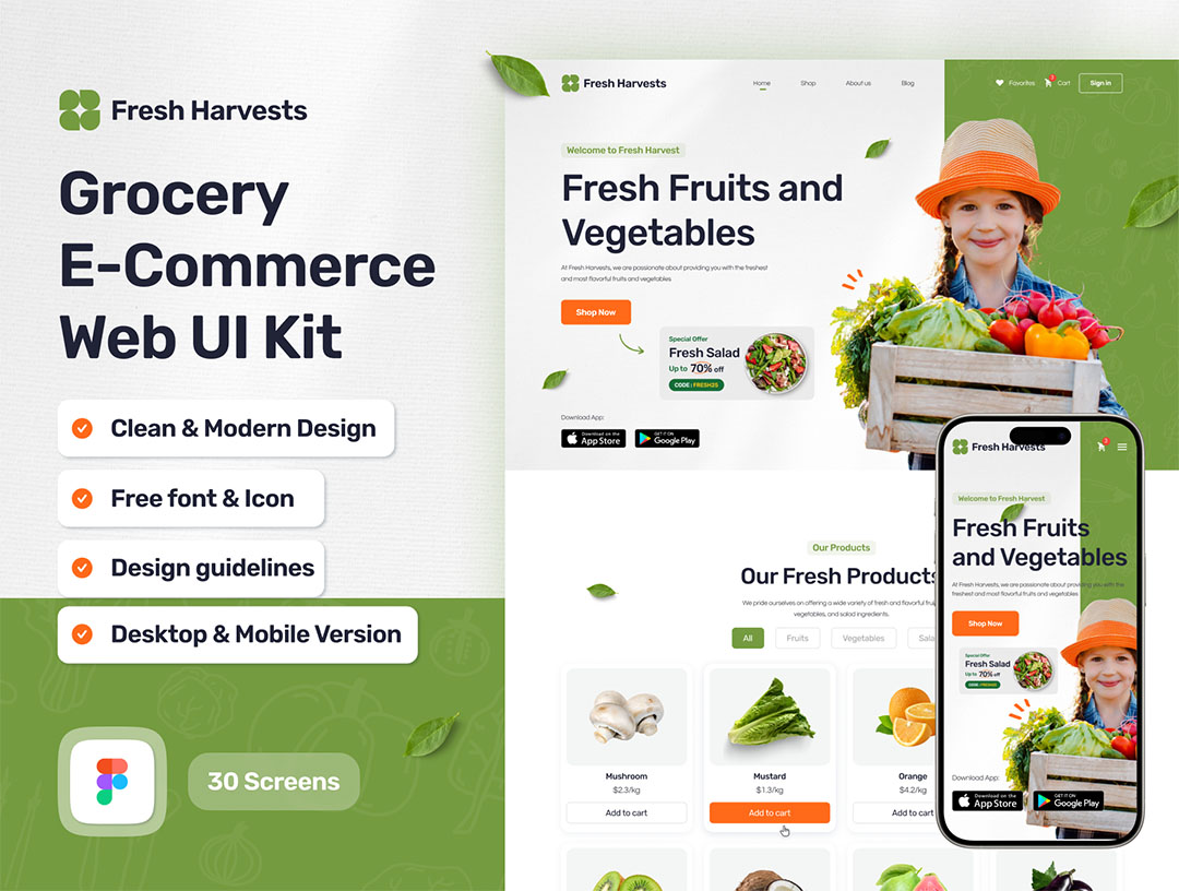 30页响应式UI设计新鲜蔬菜,水果外卖网站设计figma源文件