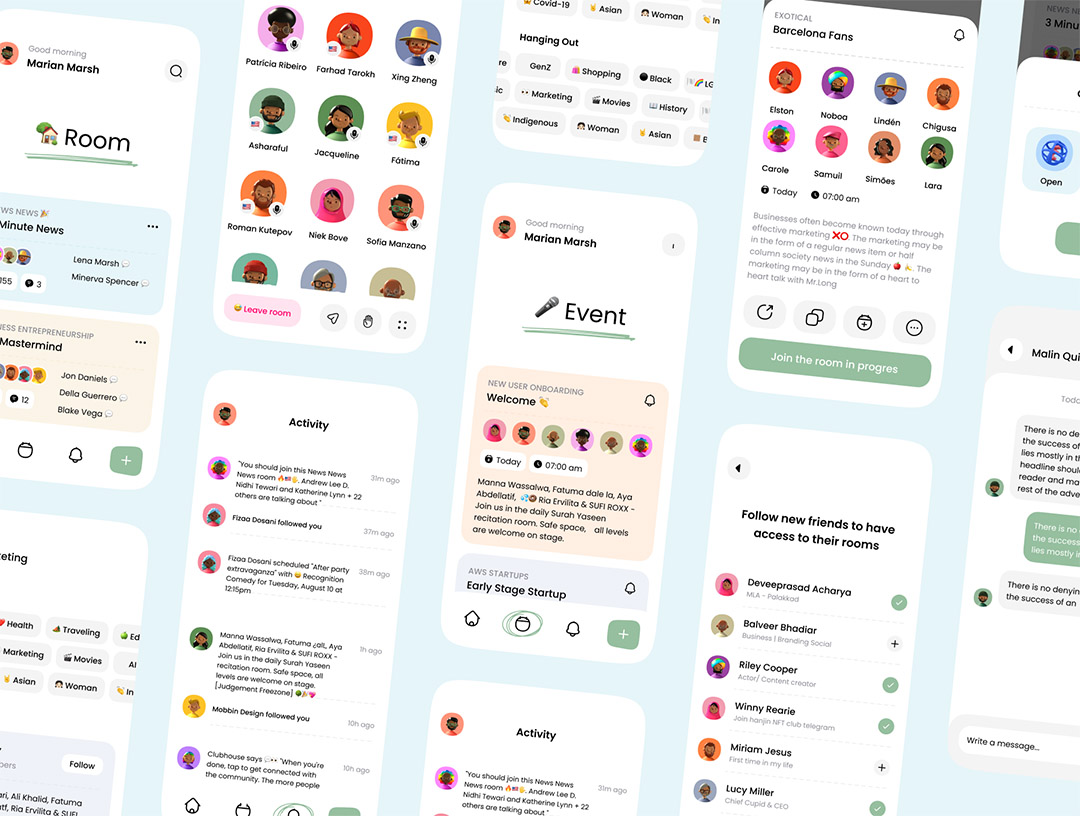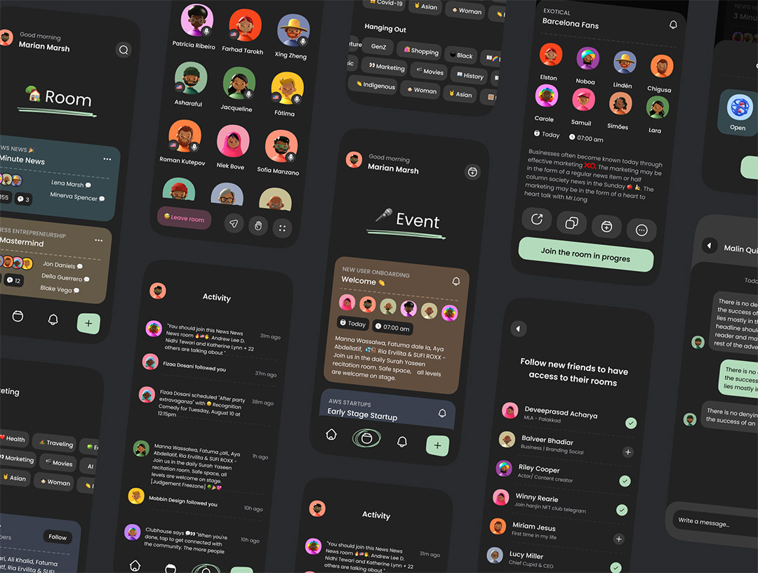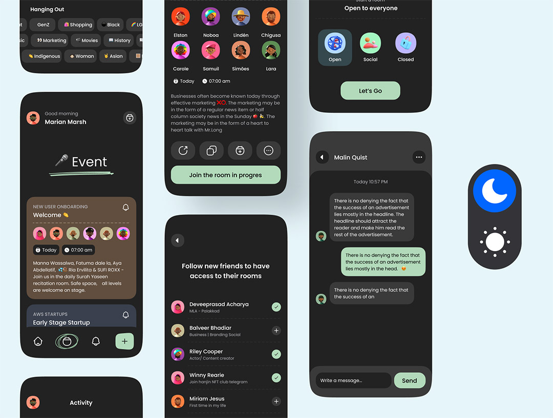 70页明暗社交互动音频app设计Figma、Sketch格式