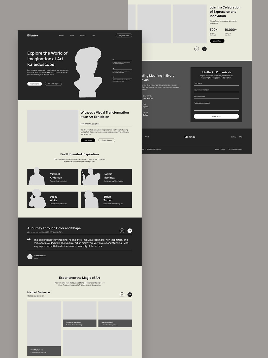 单页艺术博物馆网站设计原型sketch,xd,figma,psd格式