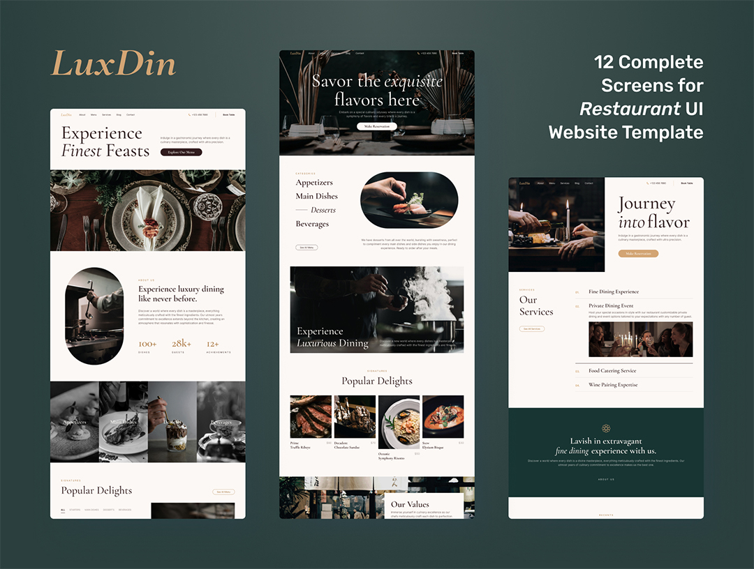 12页优雅的餐厅网站UI设计用户界面模板figma格式