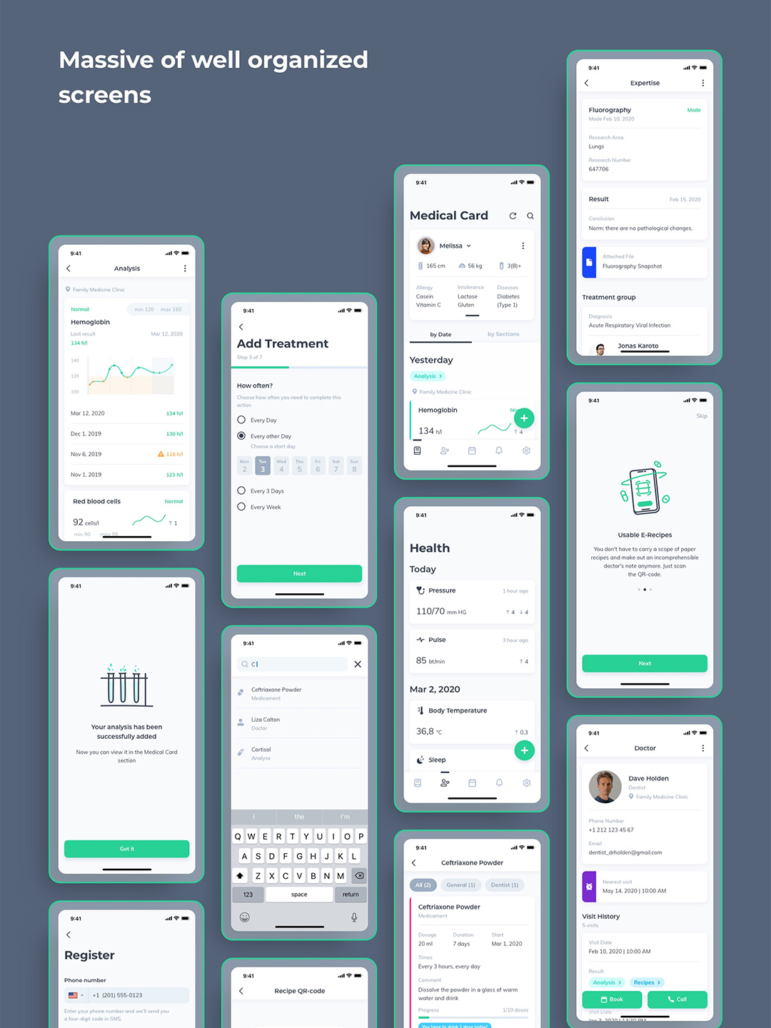 50页iOS医疗APP应用UI设计Figma、Sketch格式