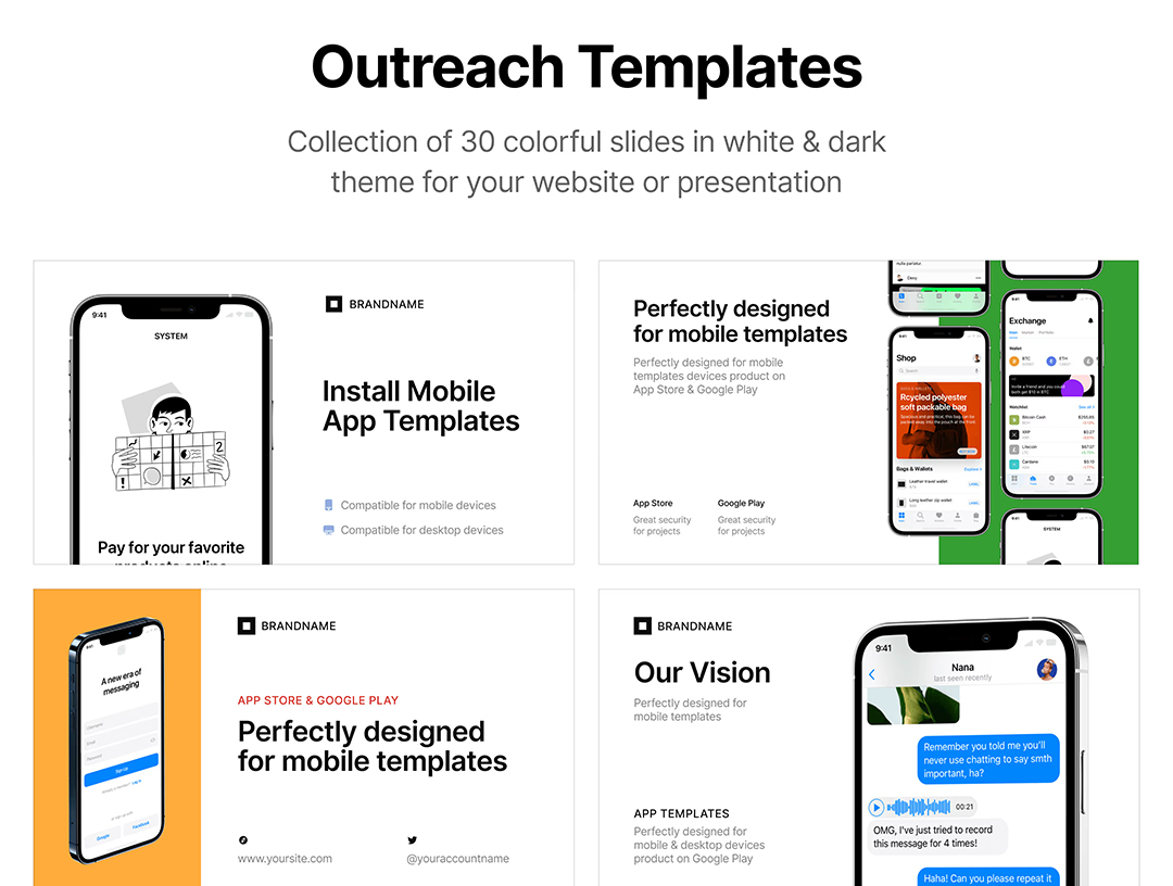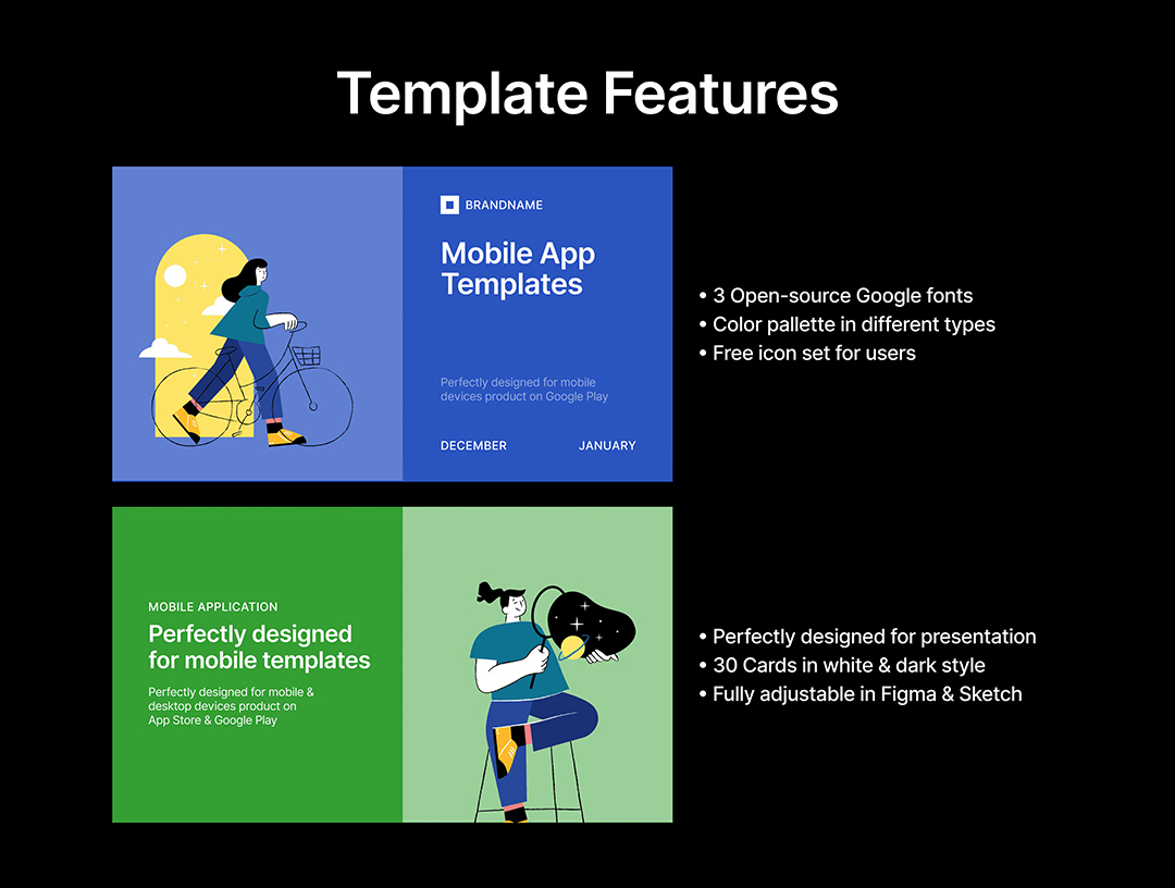 明暗各30页iOS应用程序,作品集展示模板Figma、Sketch、PPT格式