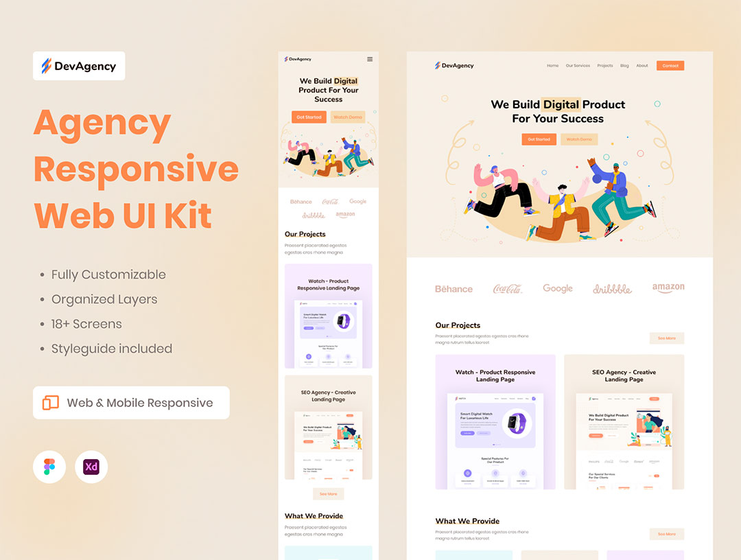 4 个具有不同风格和主题的简约和创意可定制登陆页面figma,xd源文件