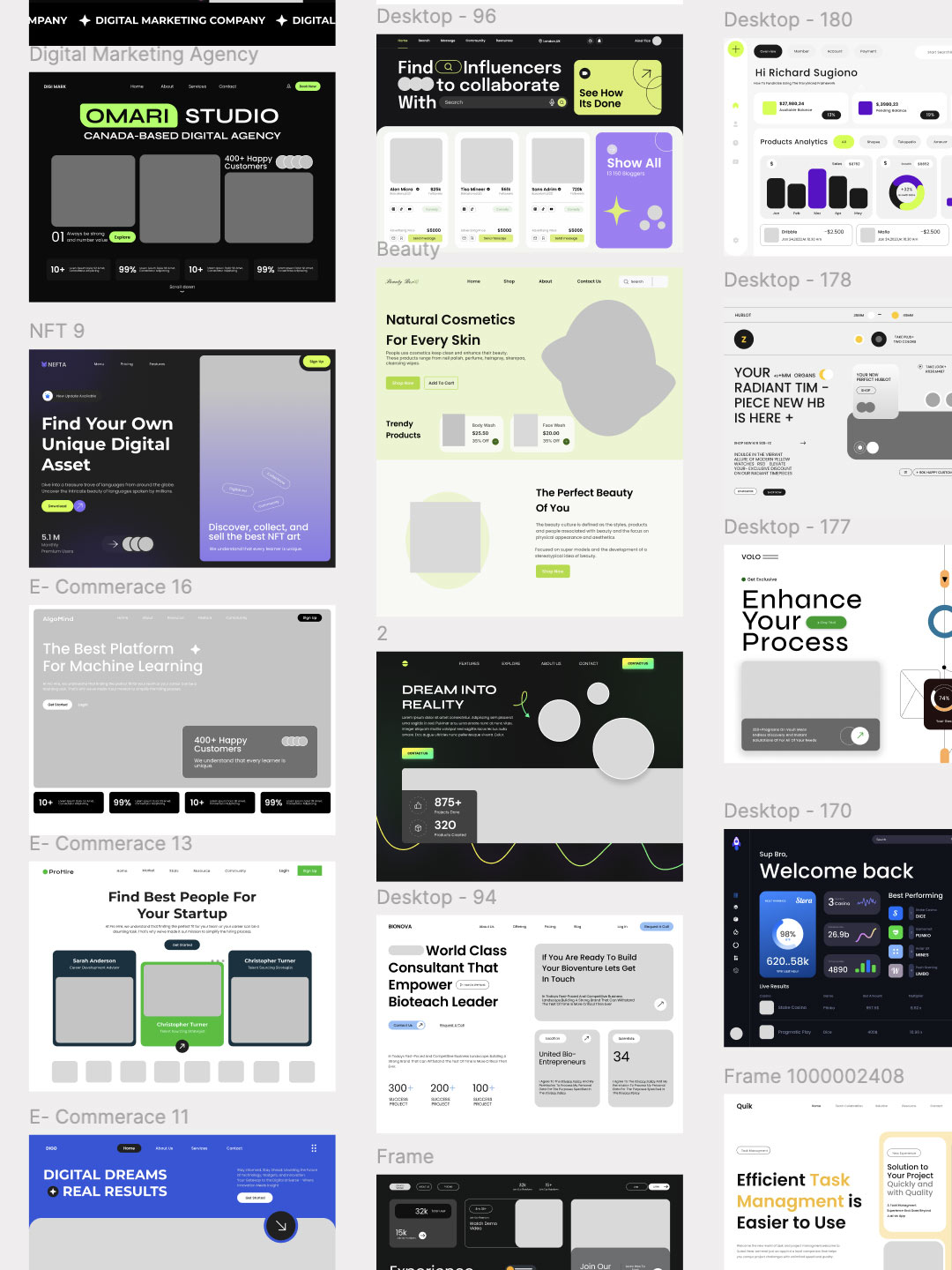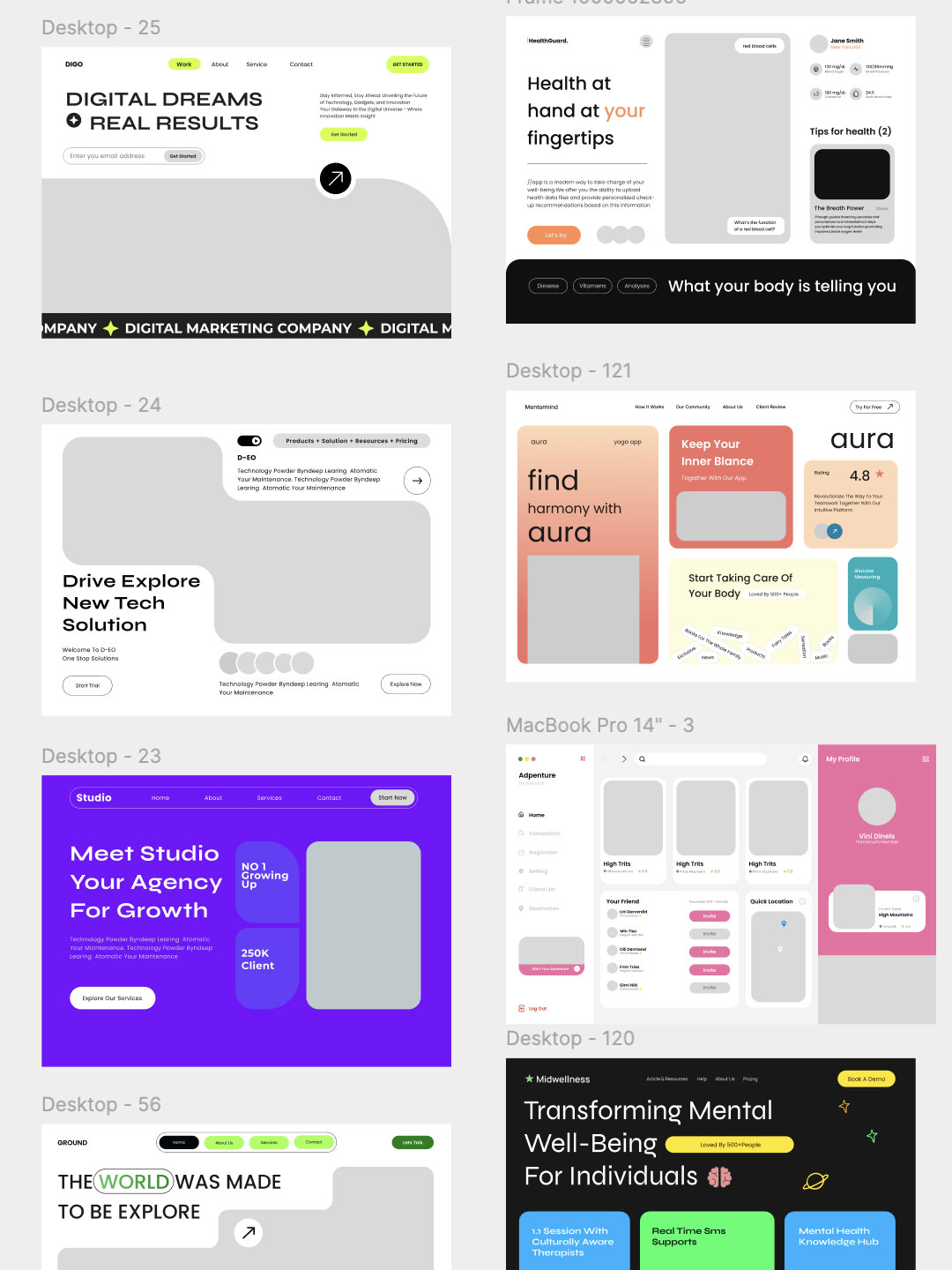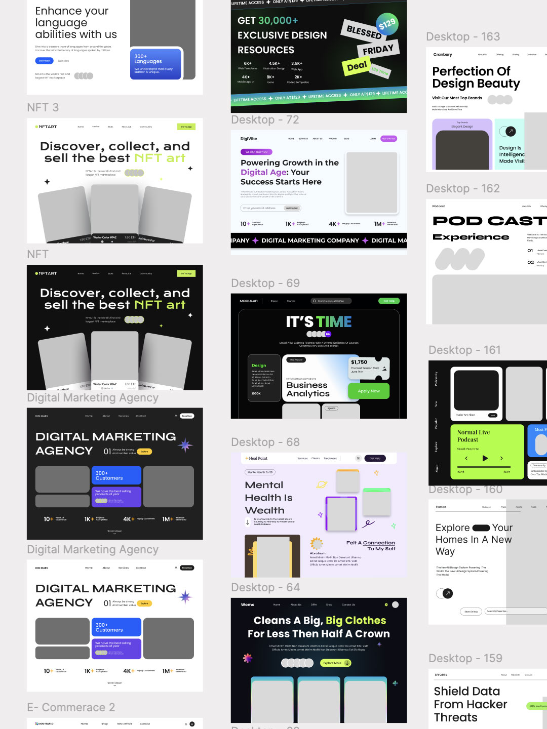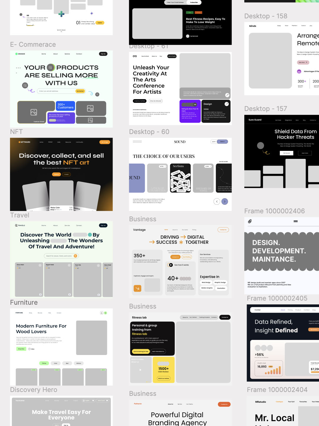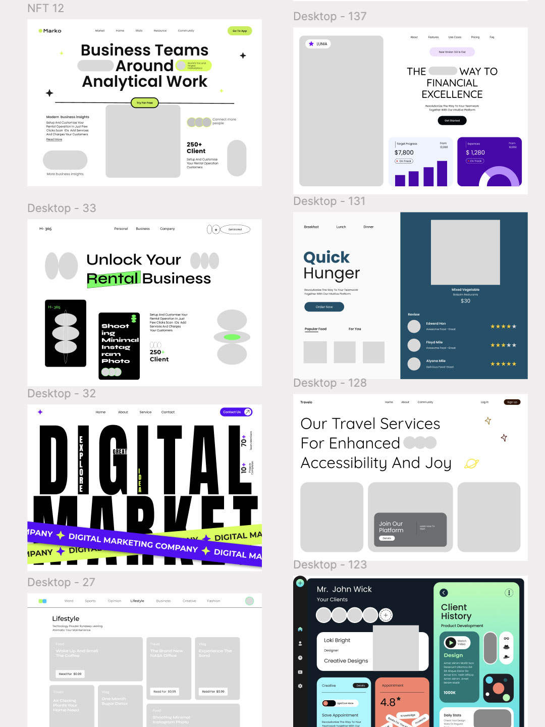 170个精心制作的英雄标题网站首屏原型设计Figma模板