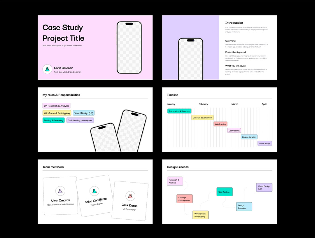 40页设计师和学生的产品UX/UI案例研究幻灯片deck格式
