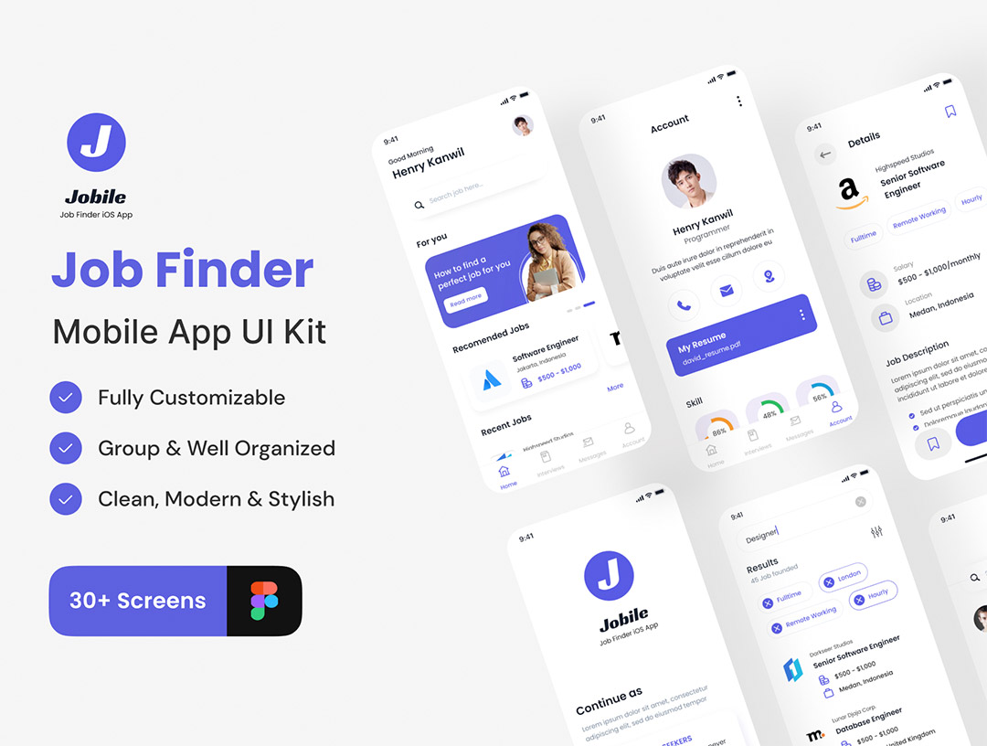 共256页7个行业app设计合集figma源文件(旅游,健身,求职等)
