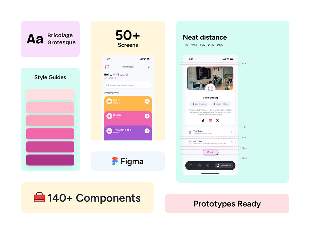 50页时尚咖啡馆,奶茶店外卖点餐app设计figma源文件(带交互)