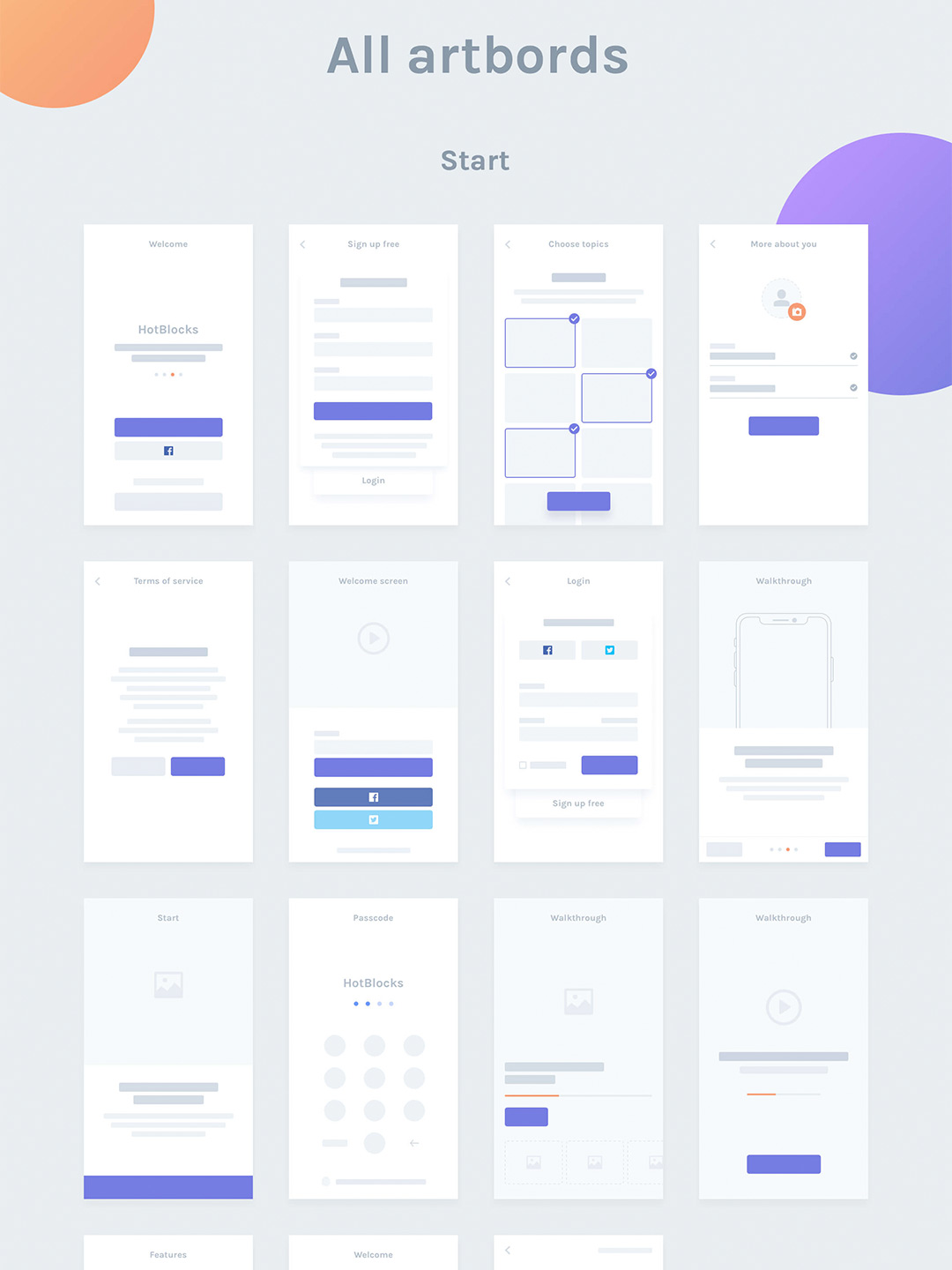 7个类别明暗240页app线框图sketch,xd,figma格式