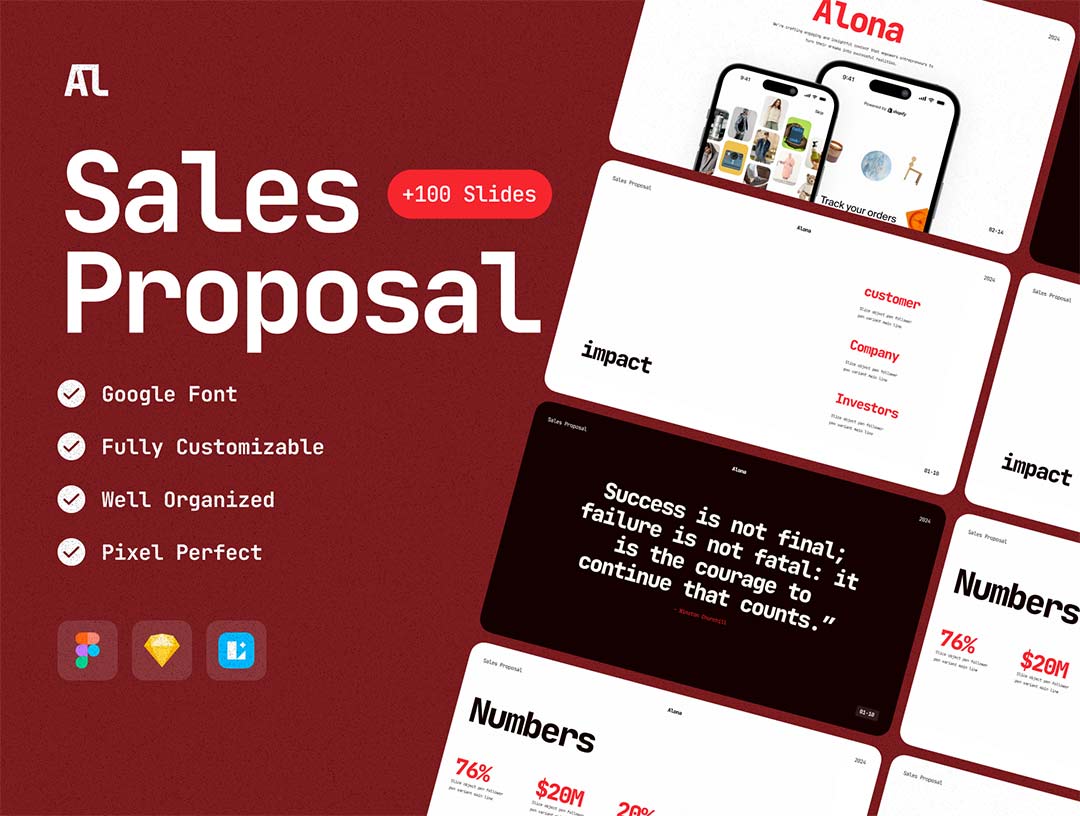 100页销售提案演示文稿Figma、Sketch格式