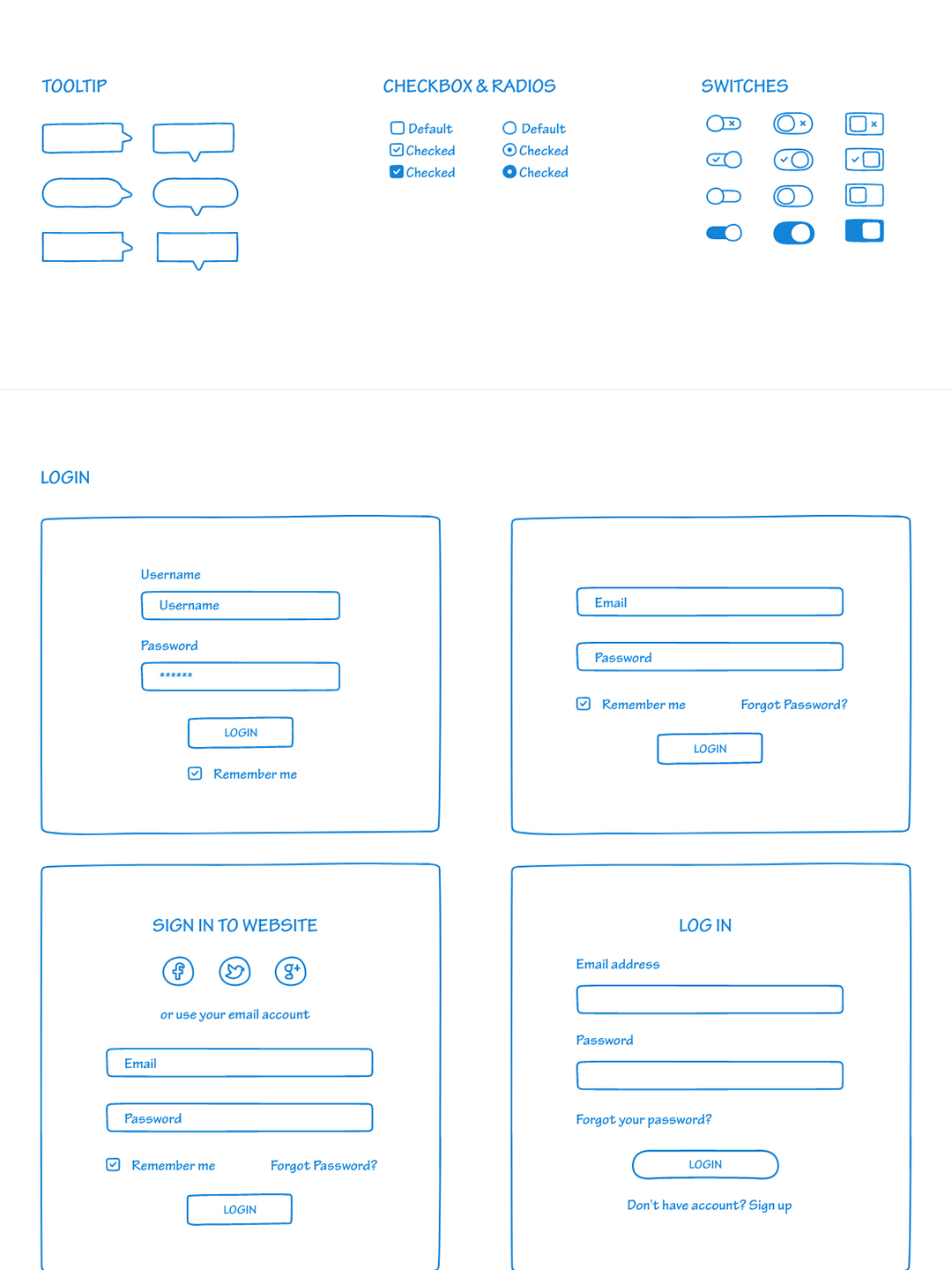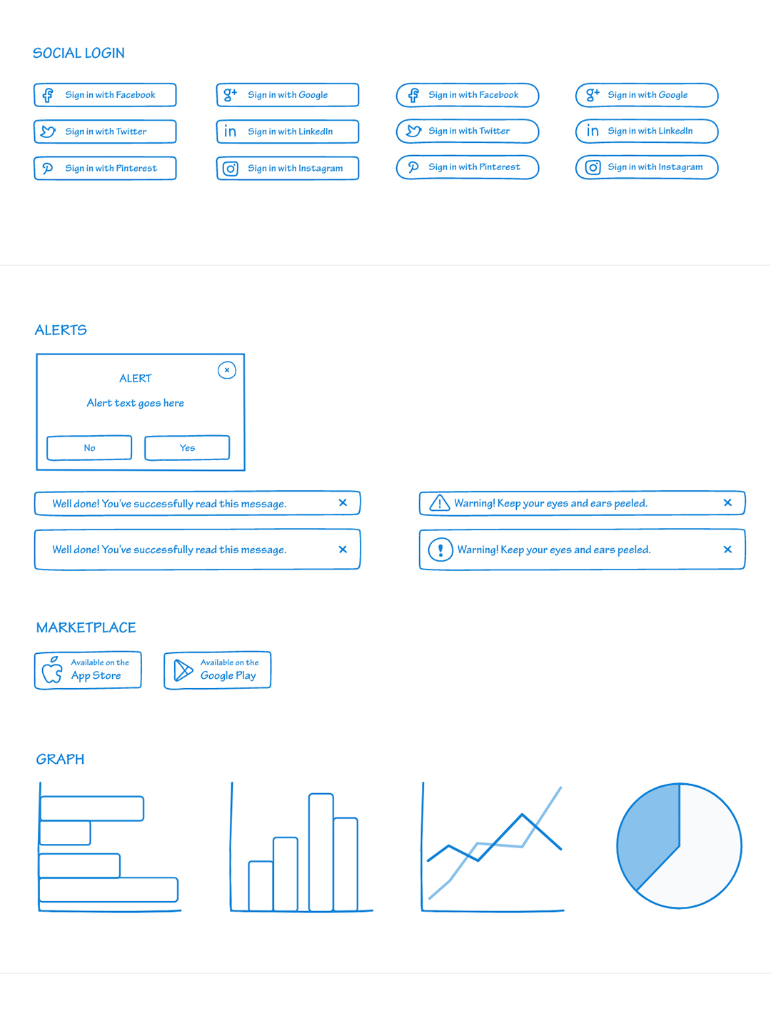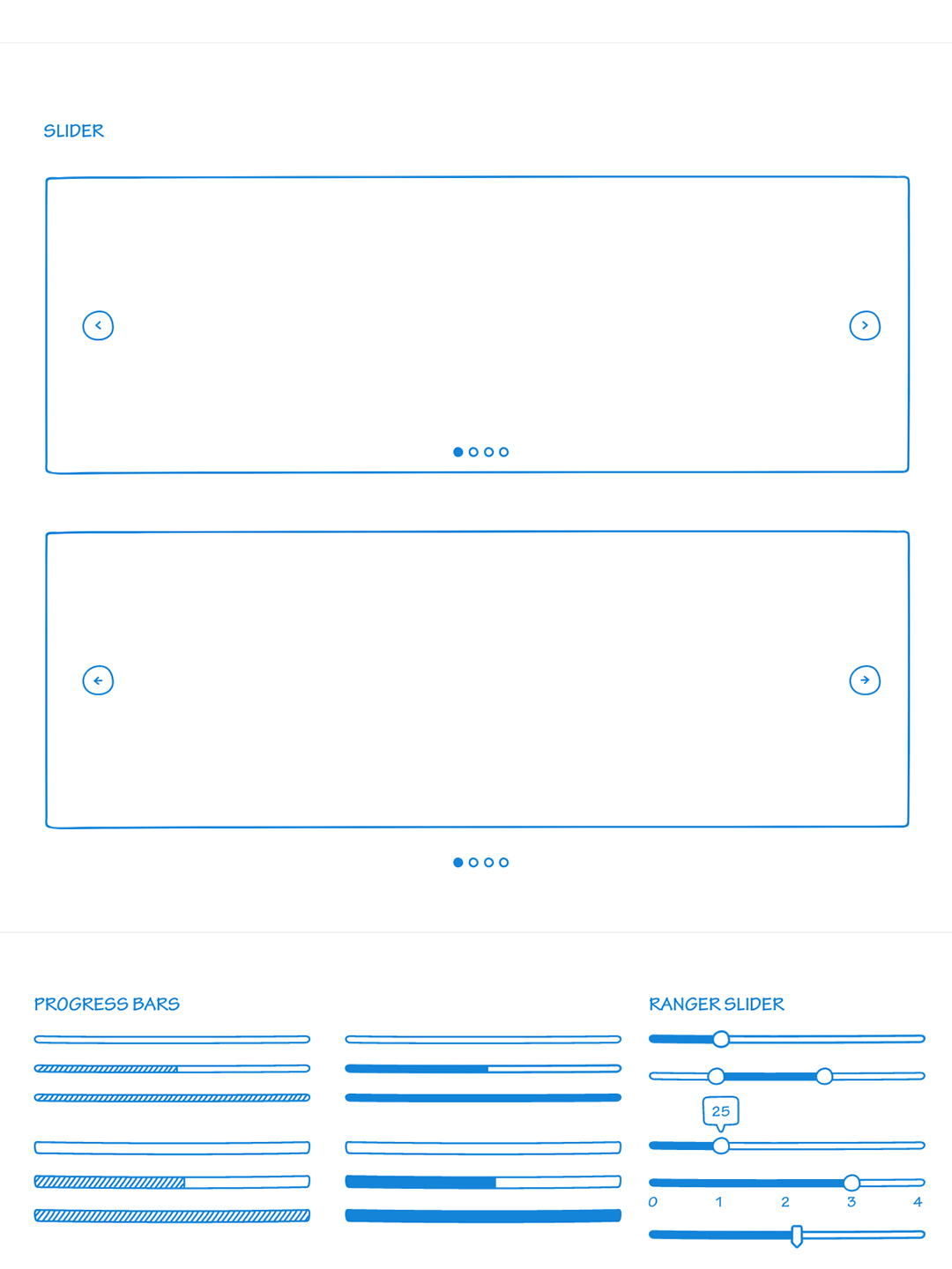响应式 UI Sketch 工具包资源,旨在成为具有 200 多个随时可用的组件的基本网站模板。