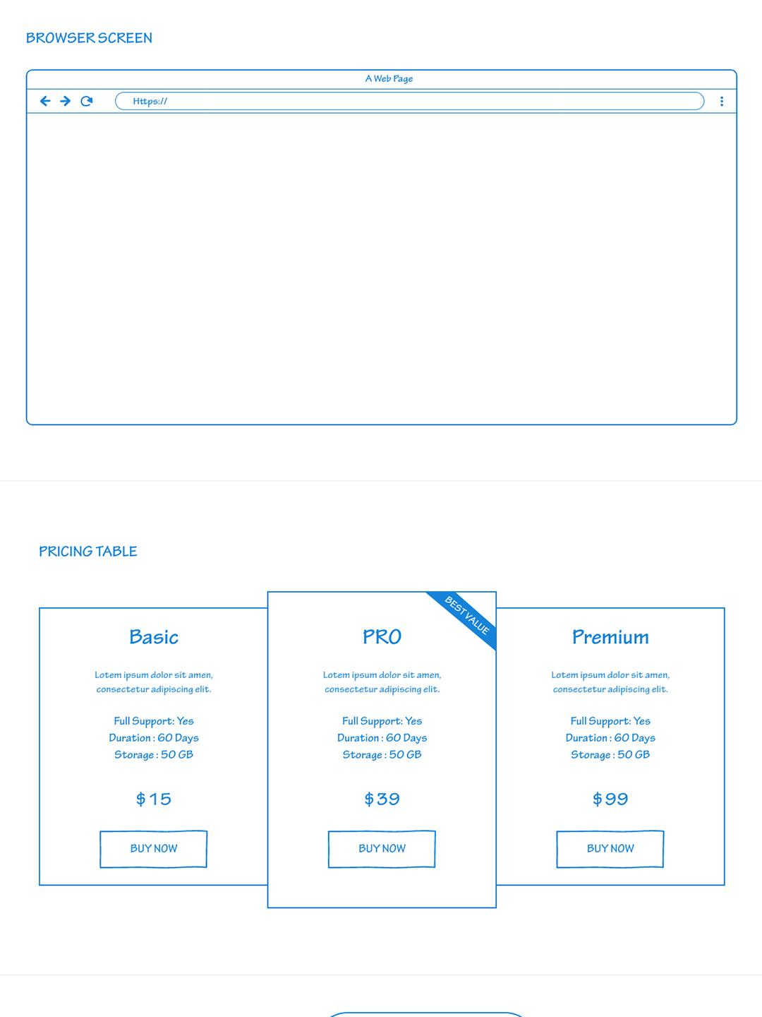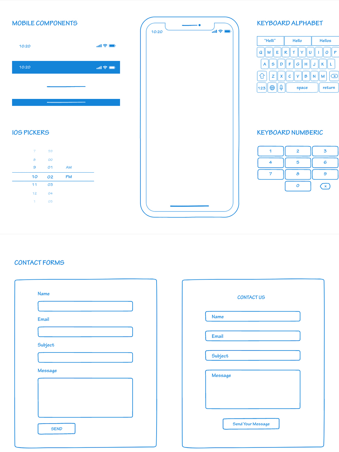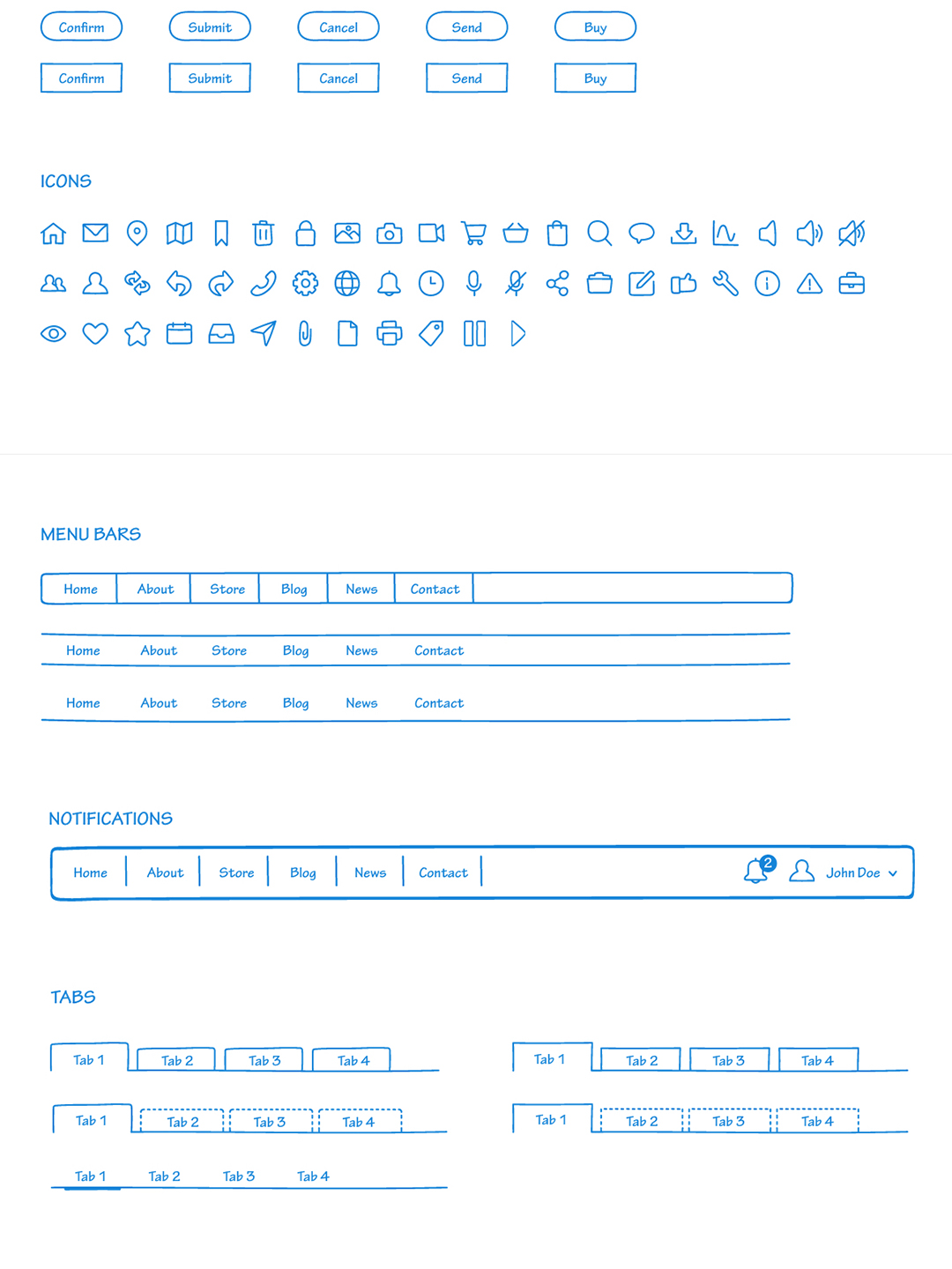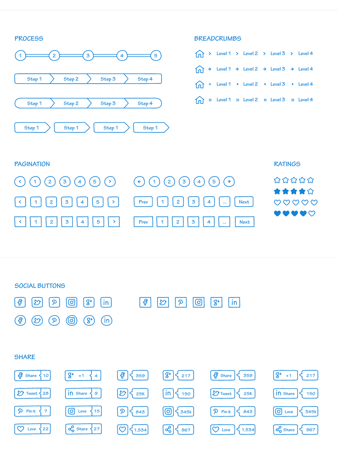 响应式 UI Sketch 工具包资源,旨在成为具有 200 多个随时可用的组件的基本网站模板。
