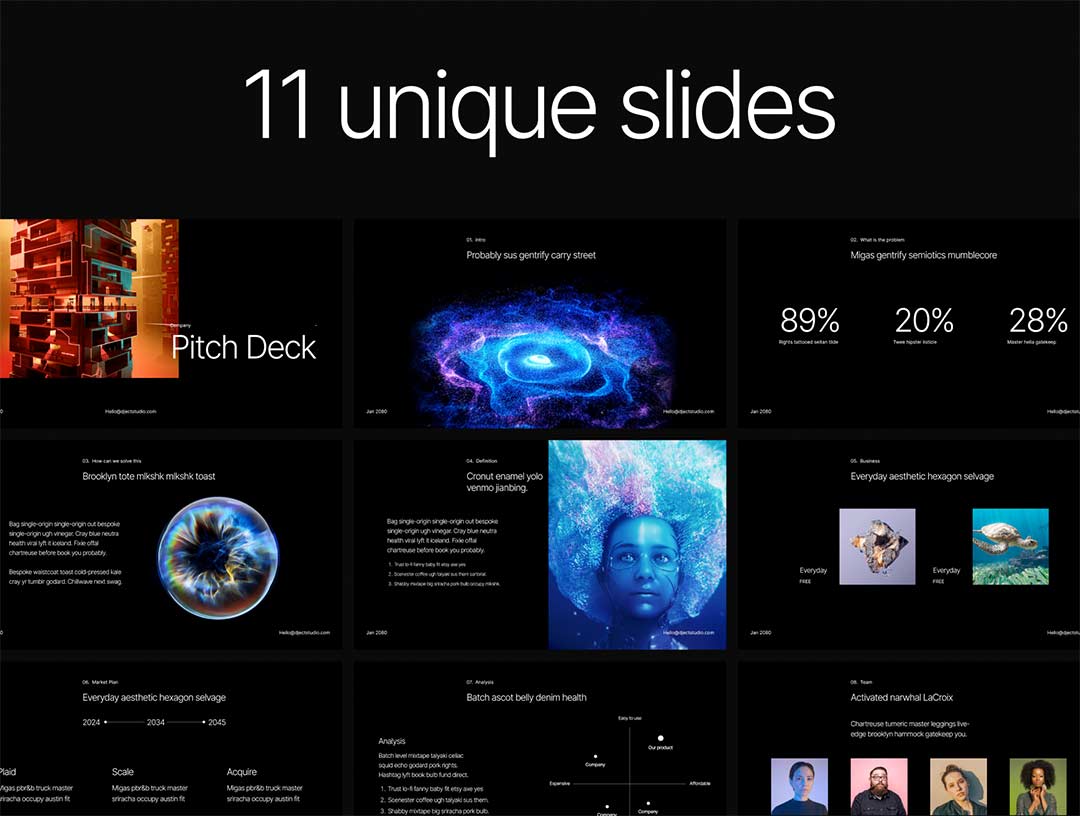 11页简约未来科技感演示文稿deck模板