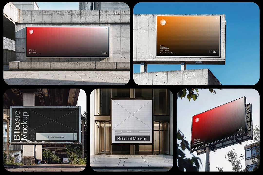 概述 40款广告PSD样机模板,涵盖广告牌、招牌、电子屏和海报,具备独特场景、自动环境光效及反射效果。