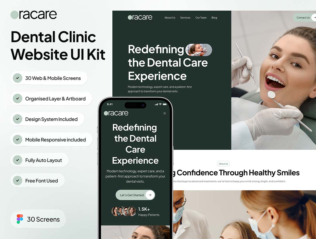 响应式30页牙科诊所网站 UI 设计figma源文件