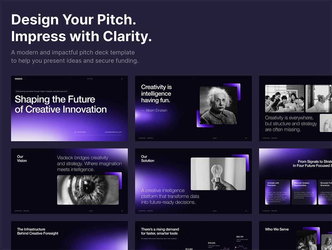 商业路演 PPT 模板 —— 它能助您自信清晰地呈现创意。无论您是向投资人推介项目、向客户展示方案,还是向内部团队同步规划,本模板均以简洁的布局、现代的视觉设计与清晰的逻辑结构,让您的核心信息轻松脱颖而出。