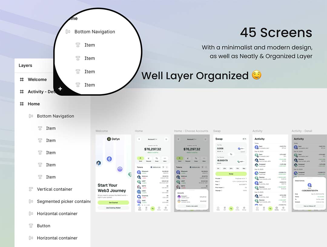 40页Web3钱包与DeFi应用app界面设计figma源文件