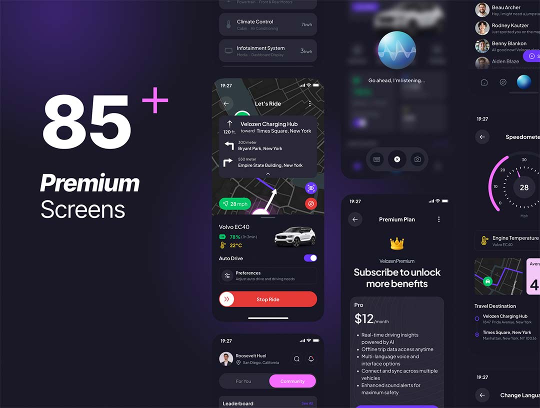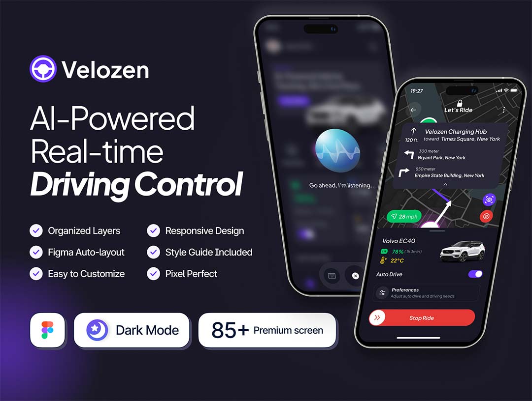 85页AI汽车辅助驾驶app界面设计figma源文件