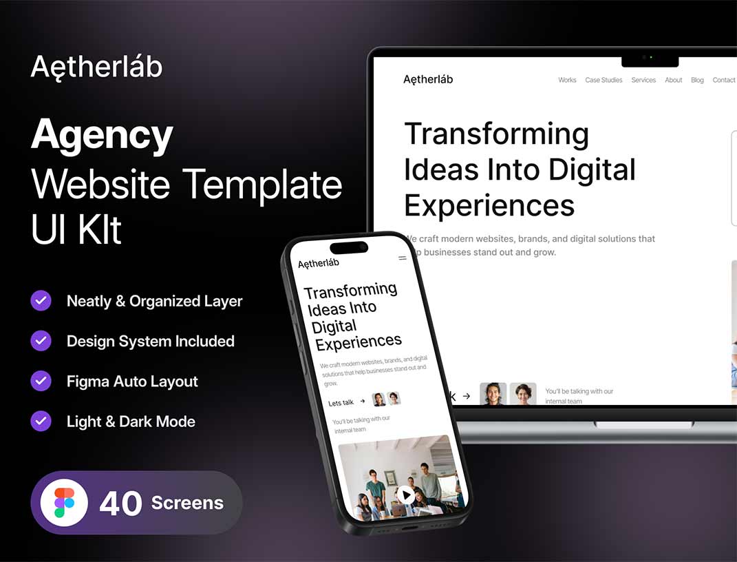 响应式明暗色各40页数字营销公司网站设计figma源文件