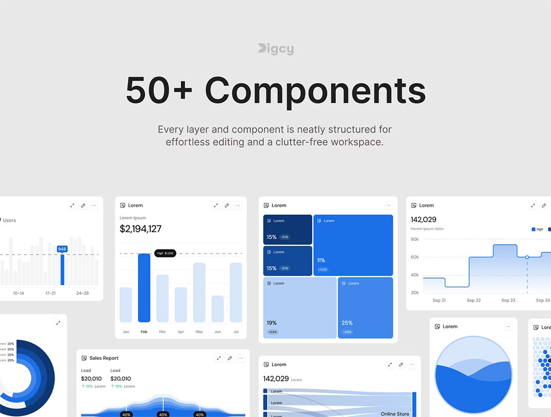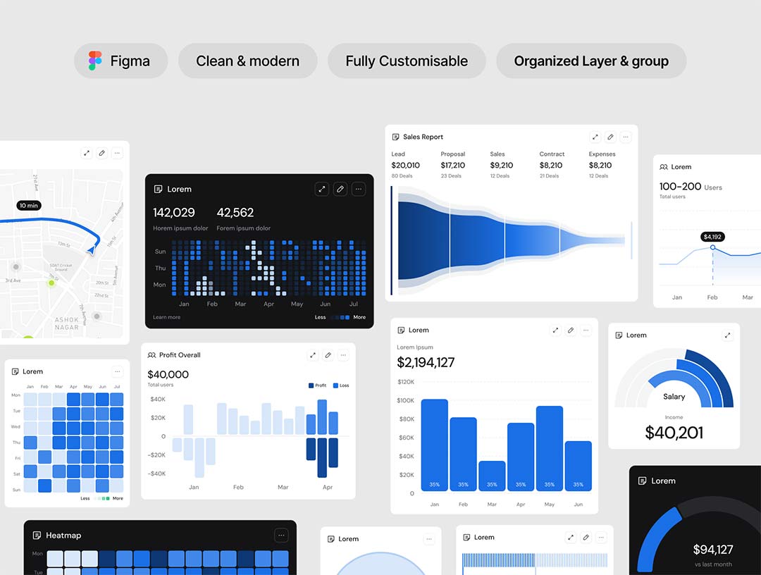 明暗各50个仪表盘图表UI设计figma源文件