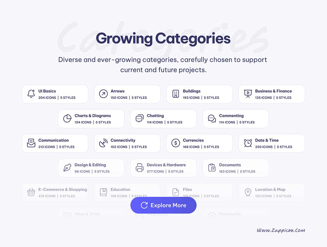 27类5个样式超20000个图标Figma, IconJar, SVG, PNG格式
