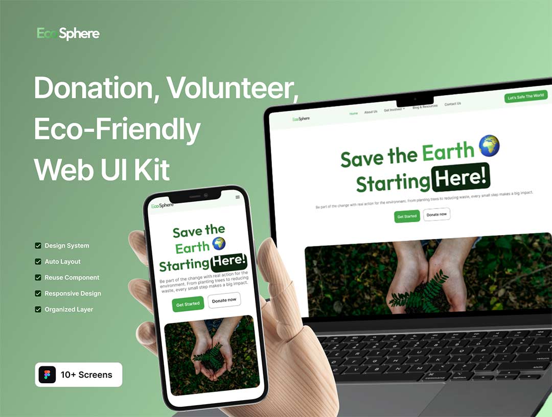 响应式共26页环保公益捐赠志愿者网站UI套件figma源文件